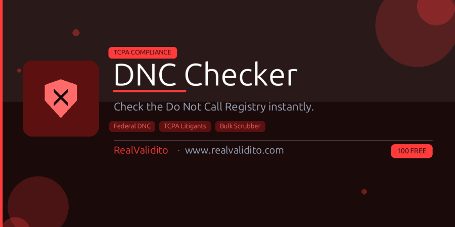Professional TCPA plaintiffs intentionally register numbers on the DNC registry to generate legal claims against businesses that call them. RealValidito’s DNC checker screens numbers against litigation risk databases — catching these numbers before they generate claims, even when they are not always on the standard DNC registry.